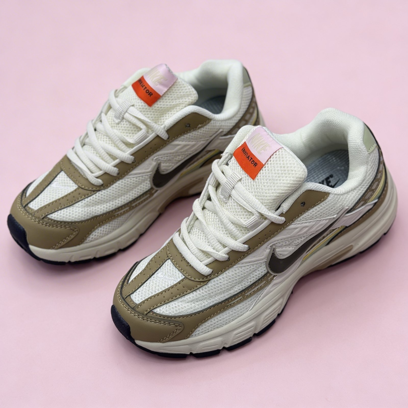 Estilo deportivo con un giro audaz. Este modelo combina una base de malla clásica con dinámicos revestimientos en tono oliva y detalles vibrantes en naranja en la lengüeta. S